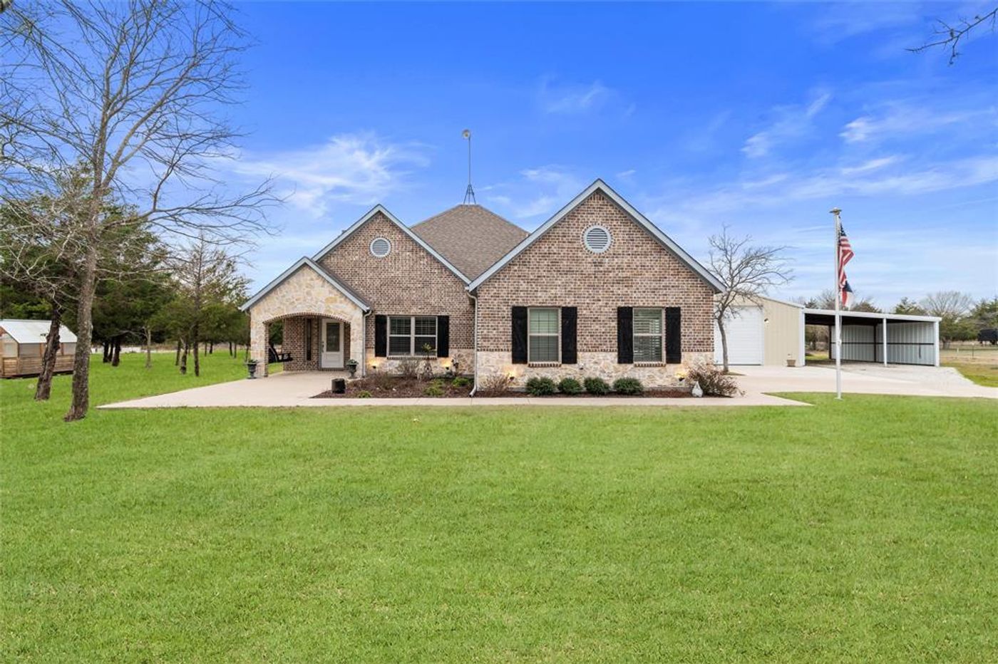 Beautiful 4 BDRM, 2 BA well maintained, Open floorplan home sitting on 2 acres with gated entrance. Wood like Tile flooring, Granite Counters, S.S. Appliances. Kitchen fridge & freezer & fridge in garage convey. Tankless water heater. Wood burning fireplace in living area, plantation shutters thru out. Gorgeous Baths. Enjoy bird watching from the flagstone covered back porch or the large wood burning firepit as you grill on the custom built wood burning grill or separate pergola covered smoke pit area. A generator and propane tank, owned not leased, have you covered if any electrical outages occur. A greenhouse & garden storage shed provide for all your gardening needs. To complete your package, a 900 sq ft insulated metal bldg. includes electricity, a spot cooler AC, work bench & wood vice provides for hobbies, Party's, or extra parking. Attached is a 30 X 30 carport for trucks, boats, trailers, etc. Truly, country living at it's finest. Great internet & Cable. 10 min to Farmersville.