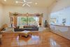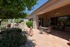 The master bedroom has double doors from hallway and double doors to patio plus entrance to large bathroom and walk-in, organized closet space. Bedroom has wood flooring. Bathroom has cooper sinks. There are two additional bedrooms with window treatments and wood flooring. The second bathroom has tub with single sink and built-in cabinet. Exit into the backyard mature trees, plants, beautiful spa, covered area and BBQ area for entertaining and those incredible open spaces and mountain views. Interior / Exterior Newly painted... Fresh & Bright