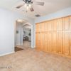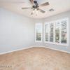 2bed plus large den ''Daybreak'' model within the highly desirable Solera gated, golf & lake community. Newer AC & stainless steel appliances. Plantation shutters & tile flooring throughout. Large kitchen loaded with cabinets w/pull-out drawers, spacious island, designer backsplash. Custom built-ins at den. Garage storage w/epoxy flooring. Sun shades at back patio, desert landscaping front & back. The private Springfield clubhouse is a social hub of activities. Clubhouse amenities include a fitness center, two outdoor pools, hobby rooms, library & movie theater. Tennis courts, bocce ball, horseshoes, shuffleboard & basketball court. An 18-hole executive golf course winds throughout the community. 10-15 miles to countless museums, restaurants, theaters, casinos, Chandler Mall & golf courses