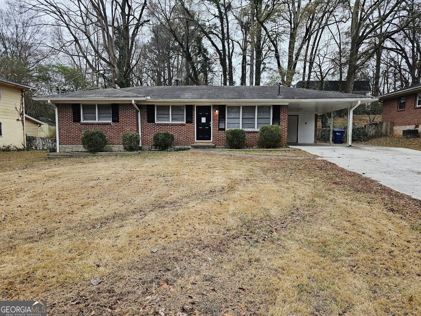 Welcome to this delightful single-story brick home, offering 3 bedrooms, 1.5 baths, and 1,047 sqft of living space in the serene community of Casa Woods Sub. From the moment you arrive, the inviting curb appeal of this property sets the tone for what lies within. The spacious front yard features lush, well-maintained grass and neatly trimmed bushes, creating an attractive and welcoming entrance. The classic brick exterior is complemented by three front-facing windows adorned with black shutters, adding appeal and character to the home. A covered carport on the right side provides protection for your vehicle, while the wide driveway offers ample parking for multiple vehicles and extends toward the back of the property. Step inside to discover a thoughtfully designed interior that seamlessly blends modern comforts with timeless elegance. The living room greets you with its warm and inviting atmosphere, featuring dark wood-like flooring, light gray walls, and refined crown molding. Large windows with white blinds flood the space with natural light, creating a bright and airy feel while maintaining privacy. This versatile space is perfect for relaxing after a long day or entertaining friends and family. The heart of the home lies in the open-concept kitchen and dining area, designed for both functionality and style. The kitchen boasts warm wooden cabinets that provide ample storage, sleek black appliances, and brownish-patterned countertops and backsplash that add texture and visual interest. A double sink situated under a window allows for a pleasant view while washing dishes or preparing meals. Adjacent to the kitchen, the dining area offers elegant gray walls, and two large windows that bathe the space in natural light. This cozy nook is ideal for enjoying family meals or morning coffee. The bedrooms in this home are generously sized, each featuring its own closet to provide plenty of storage options. The rooms are designed with comfort in mind, offering a serene retreat for rest and relaxation. Outside, the wide driveway and carport enhance convenience, while the mature trees and private backyard space provide the perfect setting for outdoor activities or simply enjoying the peace and quiet of the neighborhood. Whether you're a first-time homebuyer or looking to downsize, this charming property offers the perfect balance of comfort, style, and practicality. Don't miss your chance to make this inviting house your new home-schedule a viewing today!