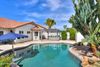 Fabulous remodeled single-level home in highly desired Chandler area. These homes rarely come on the market. Gourmet kitchen with oversized island with marble top for family gatherings, white upgraded cabinets, SS appliances with double ovens, built-in refrigerator, pot-filler, custom hood, wainscoting. Lovely new fireplace facade, 3 bedrooms plus a Den. New windows, sliding glass doors and lighting, plantation shutters. Fully upgraded bathrooms with tile, new vanities, new lighting, glass enclosures. Wood flooring in main living areas. Tile in secondary bedrooms. Custom closet organizers. Oversized master suite with sitting room and door to patio. Entertainer's dream backyard: sparkling pool with water feature, firepit, BBQ, travertine patio, extended pavers, new RV gate.