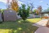 The backyard is a true oasis, featuring fruit trees (orange and grapefruit). A convenient backyard shed offers extra storage space for your outdoor essentials, while planter boxes allow you to showcase your green thumb.
