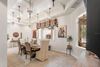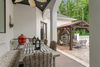 Spanning over 6,200 square feet of meticulously crafted living space, the residence boasts 6 bedrooms, 5.5 full bathrooms, and a half bath, including a private 900-square-foot guest apartment with its own entrance, bathroom, kitchenette, and tranquil views of the Greek-inspired saltwater pool and spa.