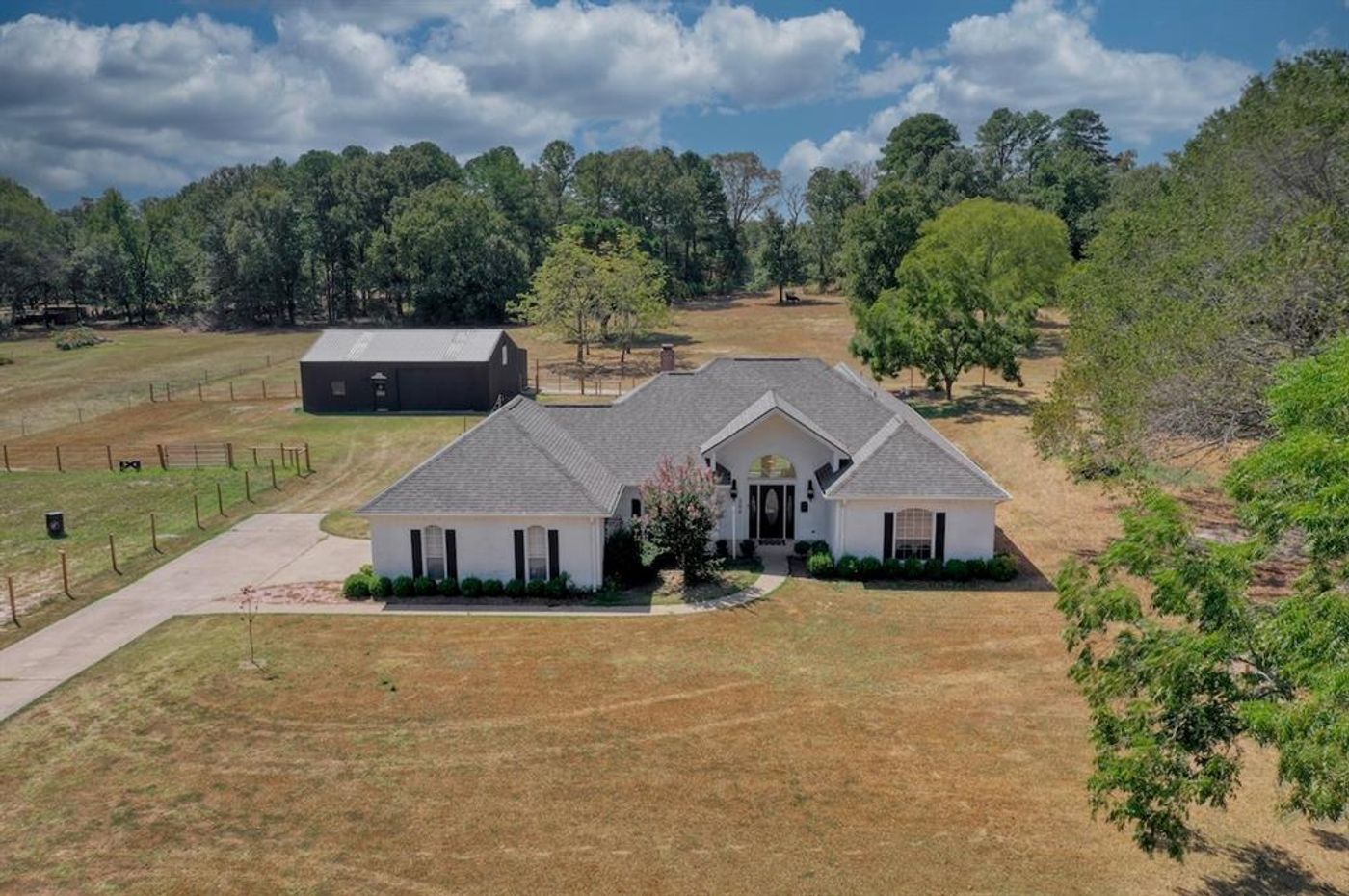 Mini farm on 5 fully fenced acres! Step inside and you are greeted by an abundance of natural light! The tall ceilings make the great room even grander with its shiplap focal point wall, wood burning fireplace and built in custom wood rack. The kitchen offers new countertops, tons of storage and an island plus an attached breakfast nook. Private owners suite has access to the screened in porch, offers a faux fireplace feature and has an attached en suite with dual closets, soaking tub, walk in shower and double sinks. The guest rooms share a full bath with a separate water closet and shower space, to make the morning routine a breeze. To round out the property you'll also find a 30X40 shop, 4 stall pole barn and a 75X150 riding arena. Some of the upgrades include new exterior paint on home and shop, ALL new interior paint throughout home, all new fixtures, countertops throughout, polished concrete floors, WH and AC air handler plus much, much more! See a full list of upgrades in docs!