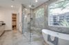 The private primary bedroom suite offers a spa-like retreat featuring a luxurious shower, dual vanities, a freestanding tub, an oversized closet, and convenient access to the laundry room. Additionally, the first floor includes a home office, a separate guest room with an ensuite bathroom, and a half bath for added convenience.