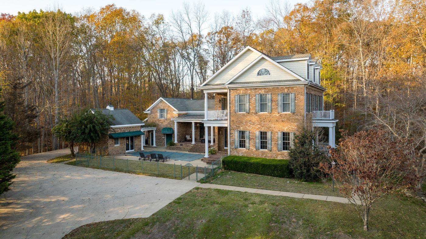 Elegant Southern Living Georgian estate on the hill situated on 5 acres overlooking the year-round Coon Creek with cascading falls. The mature hardwood forest that surrounds the home provides privacy and wildlife. Inside, you'll find a variety of spaces to unwind with the spacious 3-bedroom, 3.5-bathroom main house, including a serene Florida room, a cozy theater room, and a private bar area, making this estate the perfect blend of elegance and comfort for both relaxing and entertaining. The home is complemented by additional living space and a full bath in the pool house, perfect for guests or entertaining. Outdoor living is equipped with a pool, covered porches, wooded areas as well as front and back yard open space, and beautiful stone bordered garden area. Lawrenceburg is a vibrant and growing town strategically located between Nashville, Tennessee, and Florence, Alabama, making it an ideal spot for those seeking a blend of small-town charm and easy access to larger cities.