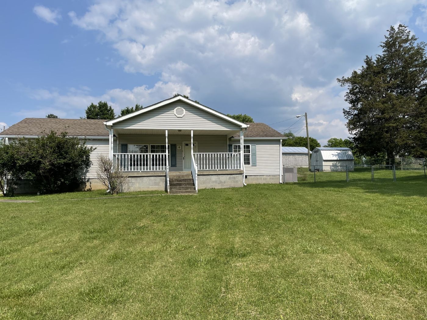 Home sits on almost an acre featuring 3 beds and 2 baths. Home features an add-on room that could be used for den. Spacious kitchen with granite countertops, along with newer appliances including a refrigerator. Home also has a covered front porch that overlooks a beautiful flat front yard. in the back you will find a nice area for grilling and entertaining, along with a fenced in backyard, and 2 storage buildings that remain with the property. The home is being sold AS-IS, but with a little TLC and adding your own personal touches will make this a great place to call home.