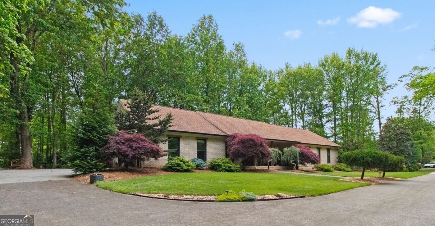Welcome home to this private, fully gated estate situated on 1.36 acres on Trinity Pond Farm, in the heart of Buford, directly across from Cloudland Vineyards! One of 4 estates wrapped around a fully stocked pond, where you can enjoy recreational fishing, and watch the geese and blue heron patrol the pond. Outdoor living at its best, with a rock firepit, swingset and playhouse for the kiddos! This beautiful ranch home has been totally renovated from top to bottom and has a designer's touch all the way through. The kitchen has an amazing layout for prepping the perfect meal with a walk-in butler's pantry for all your culinary equipment! Real brick backsplash with custom fauxed beams and custom vent-hood along with LVP flooring and high-end granite counters, and of course a deep farm sink with a touch-less faucet! The heart of the home is the screened in porch where all your problems melt once you sit a spell on the couch bed and listen to the birds chirp! Plenty of space for your own private hot tub, or pool! The main level has LVP flooring and a newly added master closet with plumber pipes and custom shelves. The basement level offers a private entry, garage door that enters into a custom workshop/mancave. The basement also includes a safe place shelter with a walk-in safe room. There is a flex room that can be used for a movie theater and or a gym that has a completed modern full bathroom! The basement also has two other flex rooms. This estate has very mature landscaping with beautiful hydrangeas that bloom all spring, summer, and fall. Has ample parking with 2 driveways and 3 garage spaces Do not miss this amazing retreat you can call home! Home warranty with America Preferred Home Warranty.