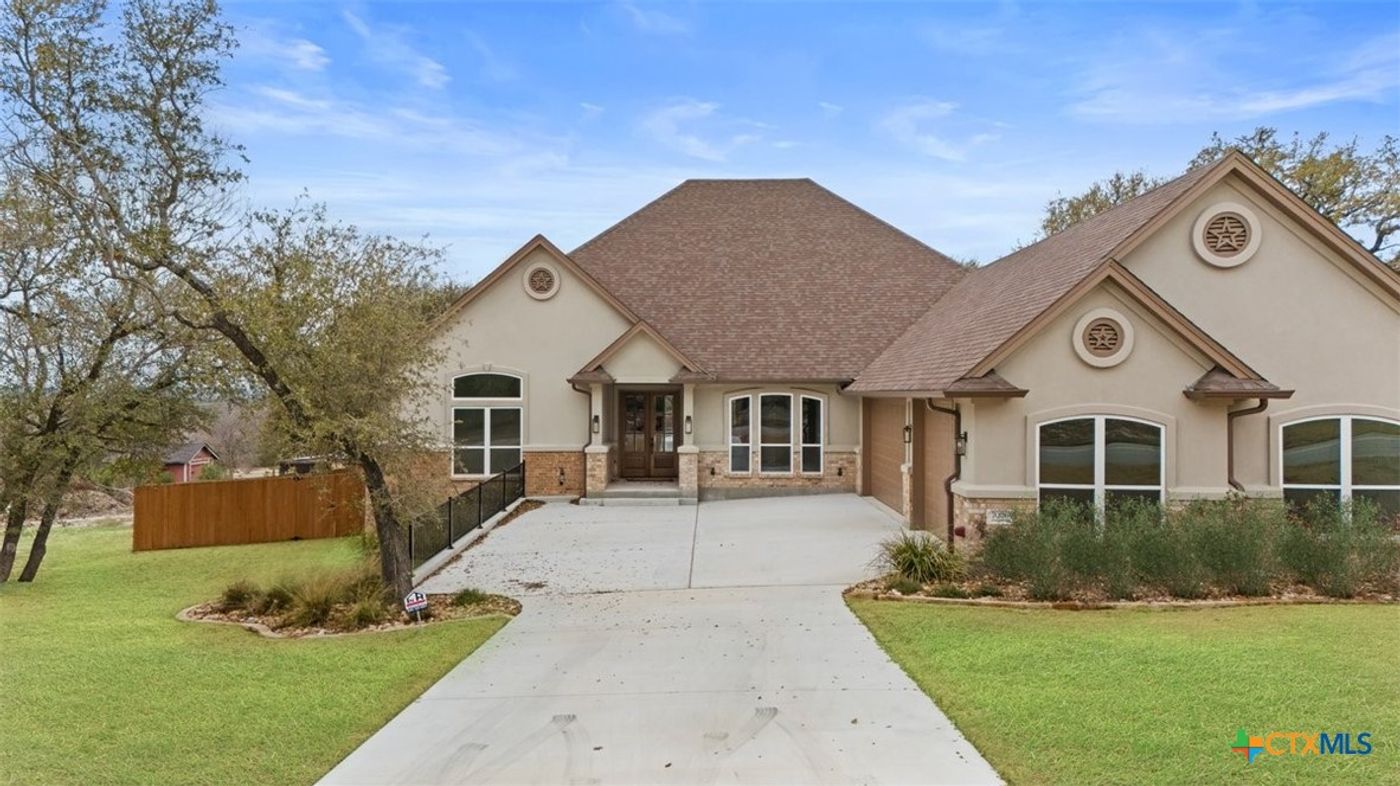 Step outside to a luxurious covered patio with a built-in kitchen, gas grill, and outdoor gas fireplace—ideal for alfresco evenings. Nestled on over half an acre near Lake Belton, this home offers tranquility, elegance, and modern convenience, including tankless water heaters and lush landscaping amongst mature trees.