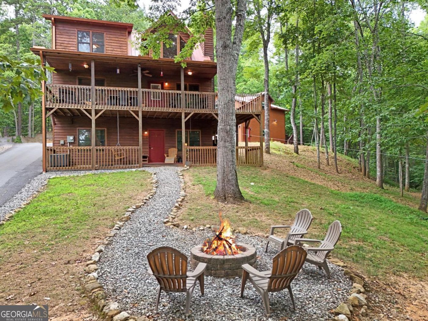 Charming, low maintenance, Hardy Board 3/2 Ranch, privately located in the middle of a gentle, wooded, 3.16 acre lot. Conveniently located to Blue Ridge, McCayesville, and Mineral Bluff. Main Floor Master  Bedroom, plus guest bedroom on Main with 2 Full Baths (one on Main, one on Lower), Spacious open Living Dining, and Kitchen. Vented gas log FP, fully finished basement with den and 3rd bedroom /workshop, and 2nd Full Bath.  Wonderfully wooded, level, gentle lot with chicken coop for fresh eggs and privacy. A very well-maintained home in an extremely peaceful setting. All paved, easy convenient access to all that North GA has to offer.