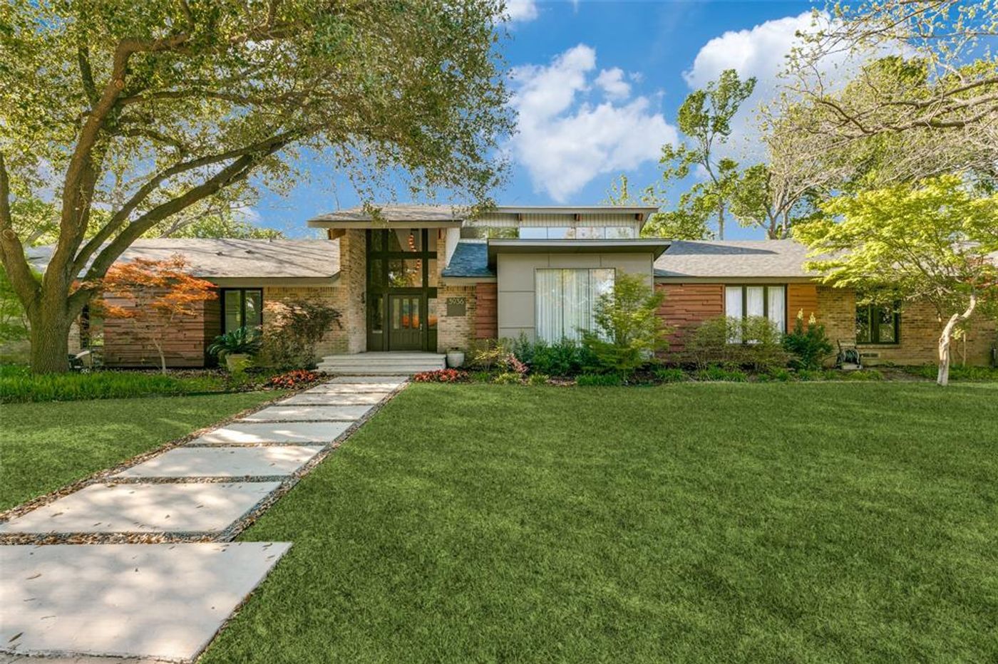 This spectacular updated mid-century home overlooks a beautiful spring fed creek with almost three quarters of an acre of park like landscaping and mature trees. The open concept living space and kitchen with their large expanses of glass allow an abundance of natural daylight and provide stunning views of the creek and wildlife. With vaulted ceilings, beautiful wood floors, and a large wet bar with refrigerator freezer, ice maker, and wine fridge, this house is perfect for entertaining. The bonus sunroom has beautiful views of the creek with operable doors and screens and built in grill. The extraordinary gourmet kitchen features top of the line appliances with custom made Italian lacquer cabinets featuring two separate work islands with sinks. The primary bedroom suite has its own glass sitting area overlooking the creek, extra large closet, generous vanities plus modern shower and tub. The oversized two car garage has an adjacent workshop and generous storage closet.