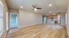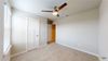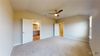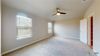 The open-concept area is the hub of the home, leading to the primary bedroom, covered patio, and the laundry room that is next to another secondary bedroom. Each bedroom is a cozy space, offering carpet and large windows.