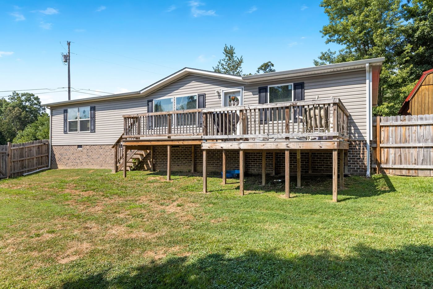 This meticulously maintained home features an open floor plan with a spacious kitchen and large island. It includes a generous living room, a huge master bedroom with an ensuite bathroom, soaking tub/shower combo, and spacious walk-in closet. Entertain on a spacious deck overlooking a large, flat, fenced in yard, storage shed, and over a quarter of an acre of land! Situated on a corner lot with a brick permanent foundation. Walking distance to schools and easy access to highways.