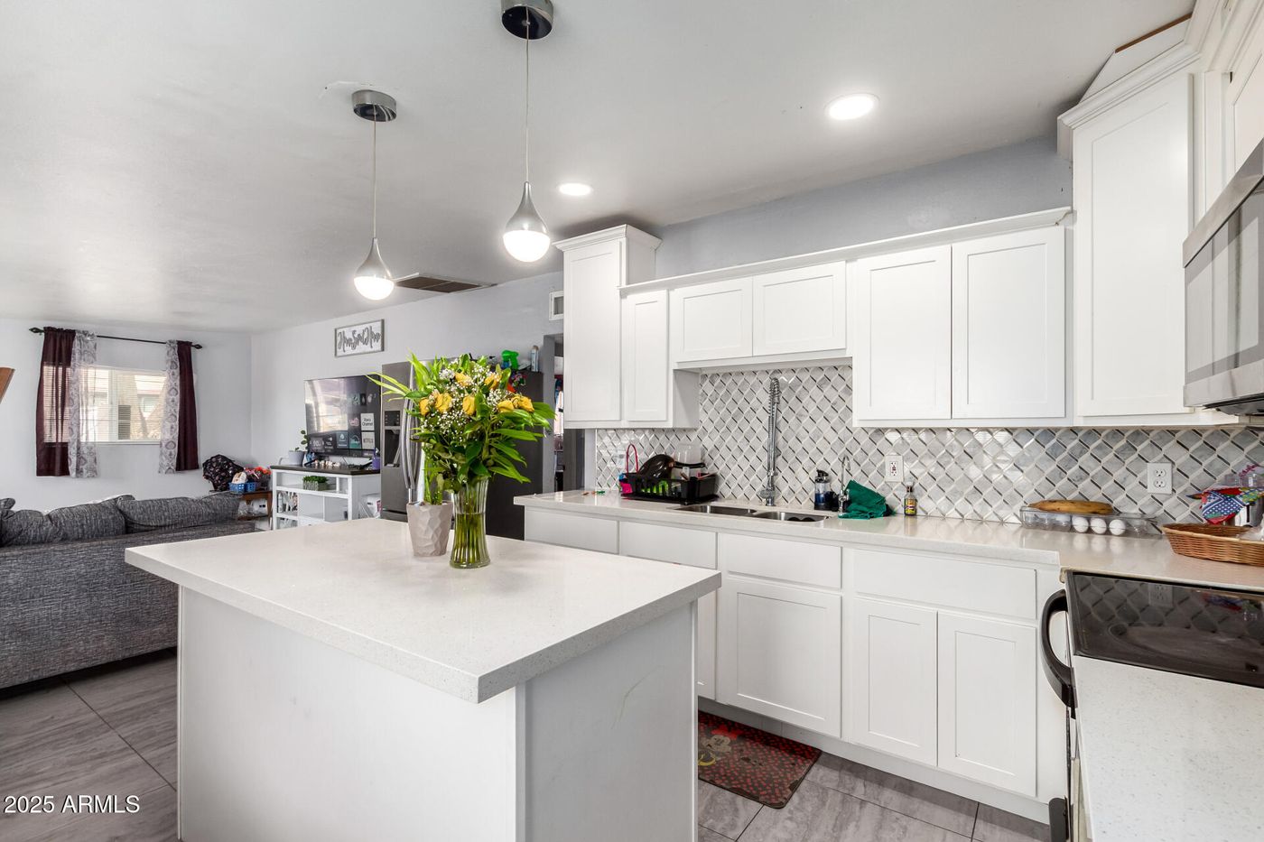 Fantastic opportunity to own this move in ready 3bed/2bath Phoenix home. This gem features charming curb appeal leading into the light and bright interior with wood look and tile flooring, custom paint tones, vaulted ceilings and an open concept floorplan. Gorgeous kitchen boasts stainless steel appliances, tile backsplash, white cabinetry, stylish counter tops and a center island. Perfect for gathering with friends and family. Lovely master retreat includes updated en suite with dual vanities. The expansive backyard with covered patio and grassy area is perfect for pets and play. Do not miss out. Schedule your private showing today.