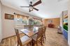 The formal dining area is equally impressive, with wonderful windows, a custom ceiling fan, and generous space to host everything from intimate family dinners to large holiday gatherings.