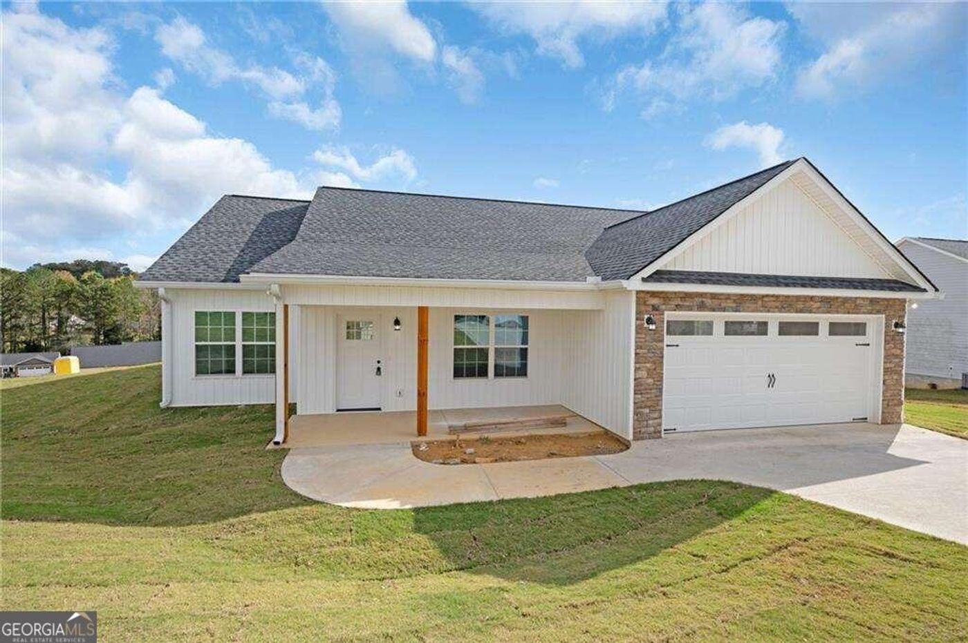 New Construction. Located minutes from downtown Calhoun is a charming craftsman style ranch home on a well manicured corner lot. A welcoming and vibrant new home with an open concept living area, dining area and kitchen is ready for immediate occupancy. The interior features a soaring cathedral ceiling, cozy fireplace, luxury plank flooring and black hardware and fixtures. Three spacious bedrooms and two bathrooms are located opposite the living space. The primary suite provides a walk-in closet, separate shower, garden tub and double sinks. The exterior front porch and rear covered porch is a perfect place to unwind. Must See! Up to $10,000 in BUYER CLOSING COSTS provided through Fairway Independent Mortgage Corporation, Terry Summey, Mortgage Originator.