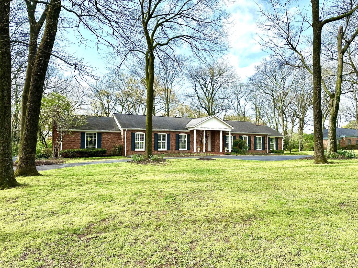 Fabulous one-level living in this stately Hillwood home overlooking an enormous park-like backyard. This classic home has been lovingly maintained and features an updated kitchen and primary suite with large bath and closet along with four other bedrooms, one of which perfectly serves as an office. A cozy study off the kitchen and a handsome paneled den with wet bar offer flexibility for comfortable living spaces. Mature trees and lush landscaping along with a backyard garden that has yielded bountiful vegetables make this yard the envy of many. The large patio provides a perfect setting for enjoying the private backyard. A generous parking area near the front door with additional open parking adjacent to the oversized carport in the rear of the home offer convenience for guests. Plenty of storage with permanent stairs to the attic. The West Meade/Hillwood neighborhood which is filled with multi-acre lots is extremely special in that lot division and tall-skinnies are not allowable. Easy access to Belle Meade, Green Hills, and Nashville West. Promising Scholars School Zones: Charlotte Park Elem and Bellevue Middle