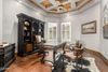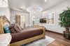 The luxurious primary suite is a true retreat, featuring gorgeous views and a serene sitting area with a cozy gas fireplace. The suite includes a spa-inspired bathroom, beautifully appointed with a remodeled walk-in shower, jetted soaking tub, dual vanities and a custom walk-in closet. A dedicated office with elegant coffered ceilings and double doors offers the perfect private workspace.