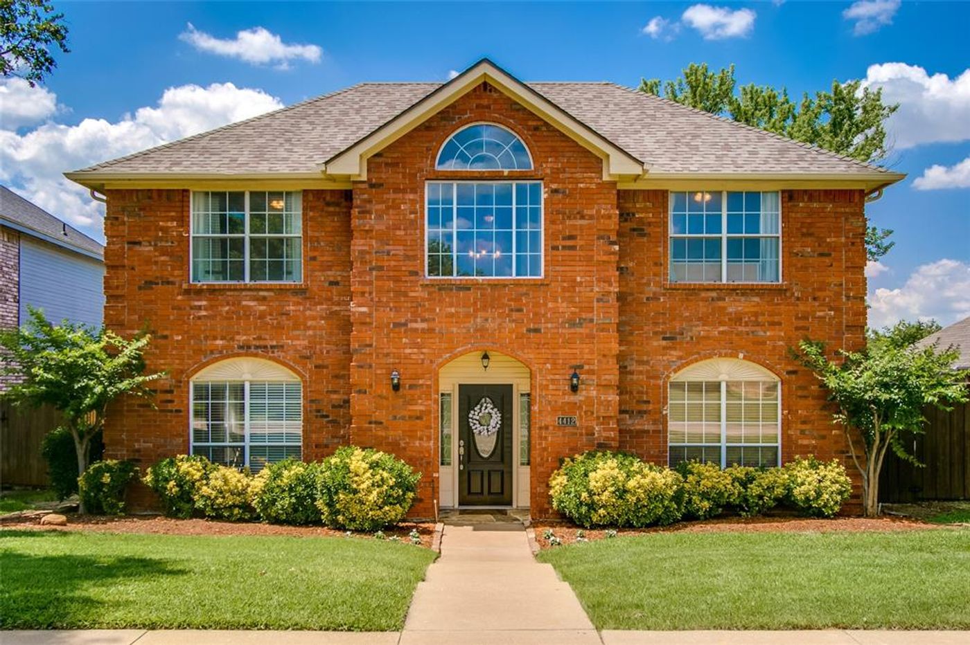 Welcome home to this beautiful 2 story home set in a quiet neighborhood within walking distance to the Lewisville ISD elementary and middle school. This wonderful kitchen has double ovens, an electric cook-top and ample counter space for preparing family dinners or preparing to entertain friends. Downstairs has hardwood floors in main areas and up the stairs to the landing. The master bathroom has dual vanities, separate shower and tub and a walk in closet. The large backyard has plenty of room from playing and a flagstone patio.