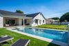 Walk out the large multislider to the large entertainer's back yard. the pool and spa promise hours of relaxation. A built-in BBQ and fire pit area are primed for memorable evenings, while grass play areas on either side of the pool offer versatile space for recreation. With ample room for potential additions, like a sports court or ADU, and the convenience of RV gates on both sides, this home is as functional as it is beautiful.