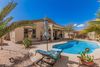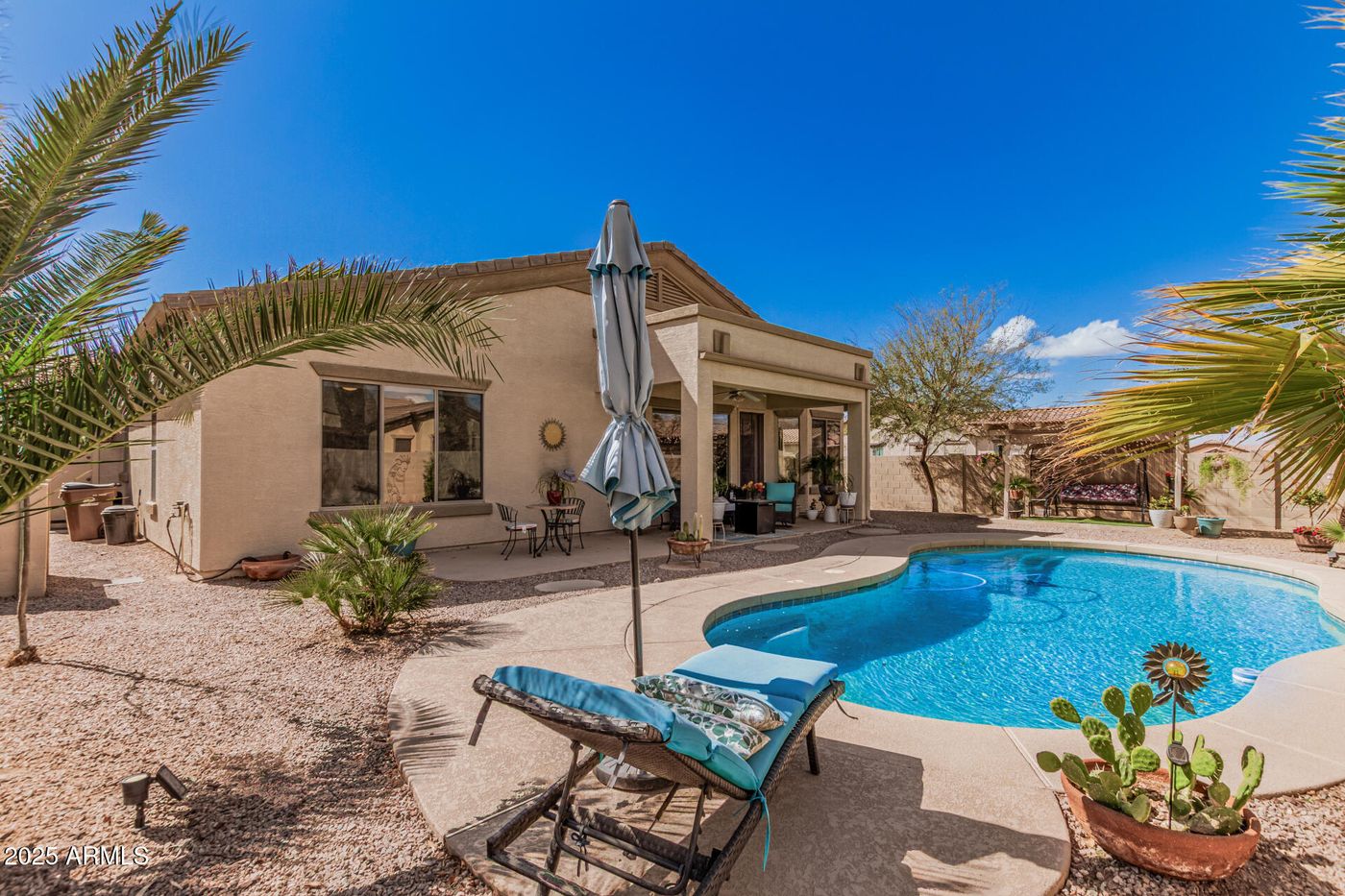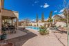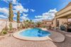 Looking for a new pool home? You've found it! This gorgeous 3 bed, 2 bath residence boasts charming curb appeal on a corner lot, a low-care desert landscape, a 3 car garage and a refreshing pool set in a desert oasis back yard. As you come in the spacious foyer you can't help but notice how grand the kitchen, dining & living area are w/high ceilings and neutral palette. Hone your cooking skills in this fabulous kitchen offering 42'' upper cabinetry, a spacious pantry, granite counters, newer SS appliances, recessed lighting, and large island. The primary bedroom features high ceilings, soft carpet, a walk-in closet and large ensuite w/dual sinks. The covered patio and backyard pool create the perfect sanctuary for morning coffee, BBQ's and pool parties w/friends & loved ones or just some quiet swim time! Many recent upgrades, including a new HVAC, water heater, garage service door, water softener loop, new exterior paint, and much more, help make this house absolutely move-in ready! This is a diamond in the rough that boasts true pride of ownership!