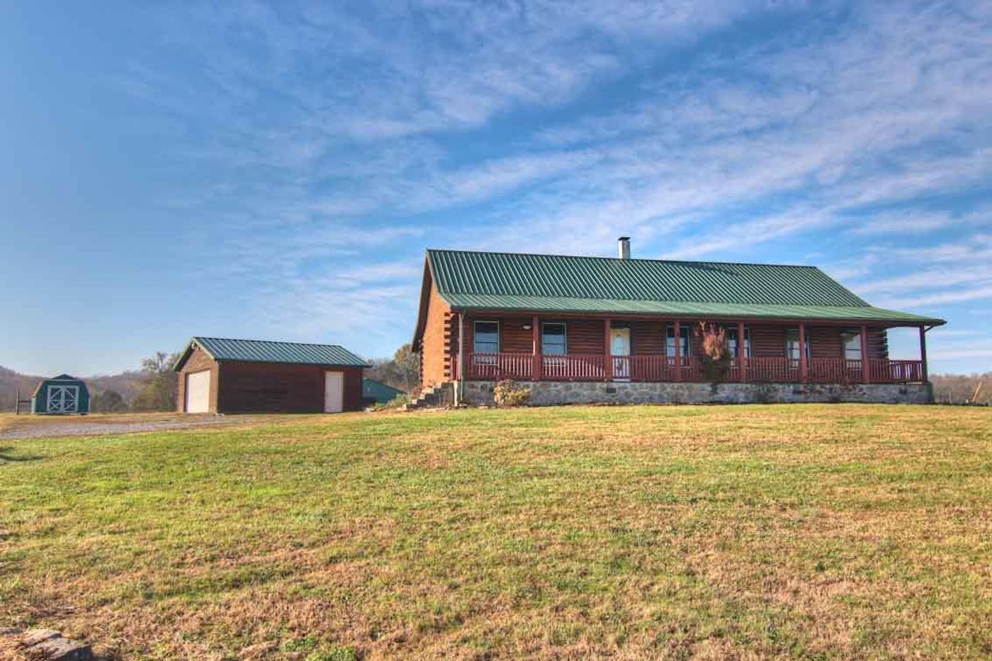 Need room for a mini farm? Log cabin on 7.2 acres with 4 stall horse barn, storage building, detached garage & above ground pool & hot tub with decking. Barn has water & electric. Home has stone fp & all wood walls w/ new tile in baths & utility room. New A/c installed in July.