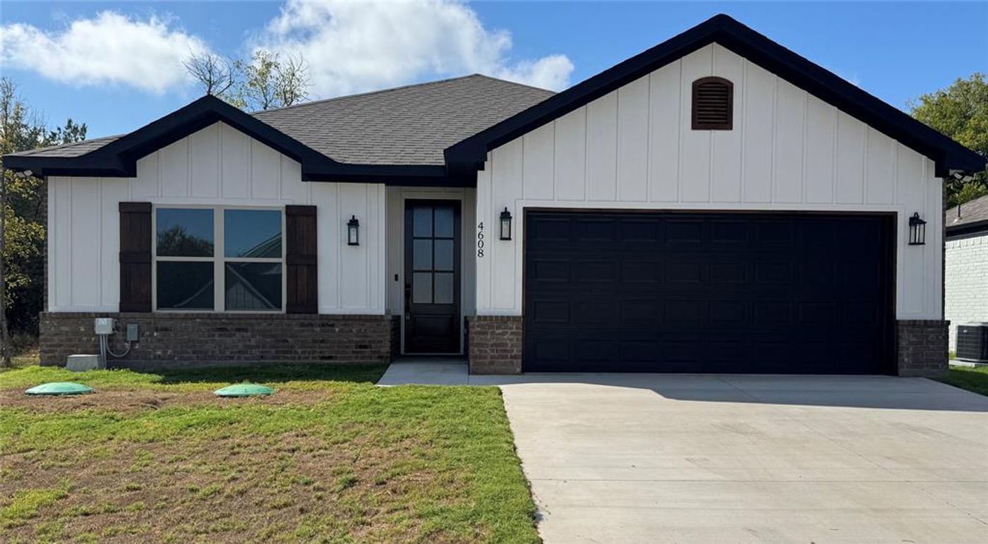 CalculateNestled in between Glen Rose, the historic town of Granbury, in the sought-after Canyon Creek Neighborhood, this ADORABLE home has just been completed and is located on a cul-de-sac. It features 3 bedrooms, 2 bathrooms, with many upgrades. The moment you drive into the driveway, you will discover this homes charm. The oversized front door, decorative lightening, along with the wood touches make this home feel warm and inviting. When entering, you walk into an impressive entry way into an open concept living space. The kitchen is well thought out featuring a walk-in pantry with outlet, stainless steel appliances, tasteful tile backsplash, island sink, disposal, gray cabinets with hardware, light-colored quartz counters. The living room features 10-foot ceilings. The dining area is bright with multiple windows. The primary bedroom is located off the living room at the back of the house, featuring a walk-in closet, along with an ensuite bathroom. The ensuite bathroom has dual vanities with double sinks, a tiled shower with nook, with storage cabinets. The other 2 bedrooms are at the front of the home with a full bathroom in the hall between them. The full bathroom features a tiled tub shower combo with vanity. If you enter from the garage, you walk into a coat nook, where you can drop off your extra belongings. To the right of this area is the laundry room featuring a folding table, shelves with a hanging rod for clothes, along with storage cabinets. The home has recessed lighting, ceiling fans in the living room, bedrooms, exterior patio, with upgraded plank vinyl flooring throughout. The door to the backyard patio has a built-in blind. The covered patio has an outlet. Sod has been installed; security lights have been installed on all 4 corners of the home; the privacy fence has been installed with gates on each side of the house. The exterior front door that is light in some of these pictures has now been stained and is dark.