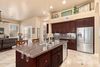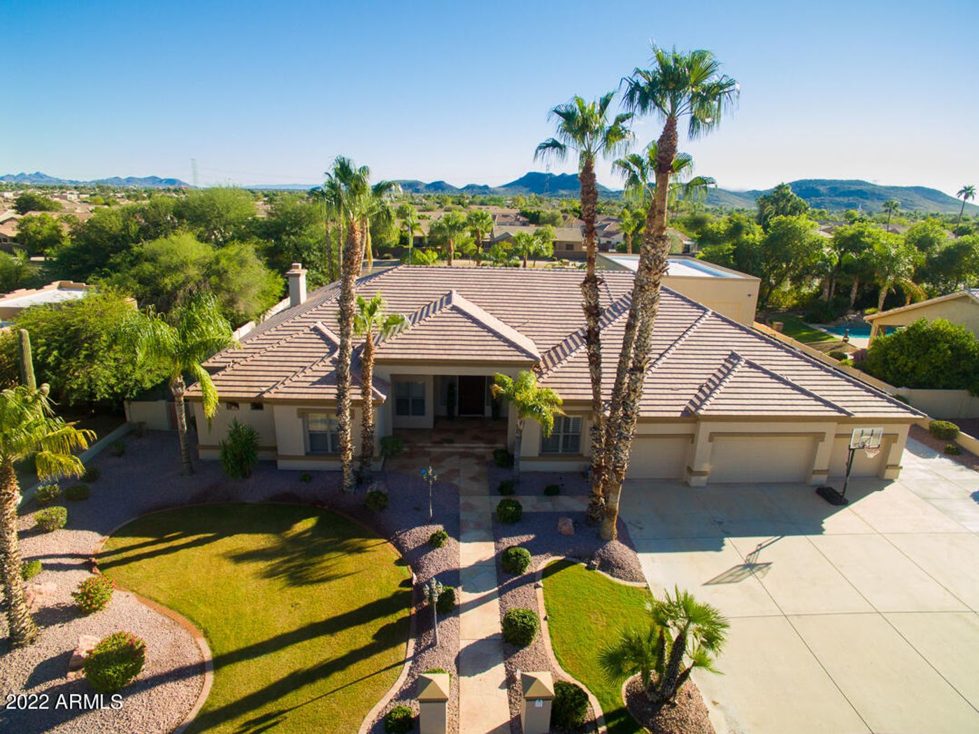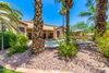 The heart of this home is the gourmet kitchen, where culinary dreams come true. The large island takes center stage, providing a stylish and functional workspace. Enjoy casual meals in the cozy breakfast nook, surrounded by an abundance of natural light. The huge walk-in pantry is sure to put a smile on your face. Induction cooktop, double ovens, stainless steel appliances are sure to bring out your best chef, and abundant cabinet and storage space to store all of your accessories. Beautiful high-grade granite countertops grace the kitchen and enhance its elegance and elevate the culinary experience. You'll also enjoy surround sound and the magnificent three-sided fireplace, creating a warm and inviting ambiance that can be enjoyed from both the living and dining rooms, providing the perfect space for entertaining guests and making lasting memories. Unwind in the private retreat of the owner's suite, which boasts a romantic fireplace and built-in surround sound. The suite includes an oversized luxurious jetted tub, a separate shower, separate sinks, and two massive walk-in closets, providing ample storage and comfort. Other custom features of this home include owned solar panels and a solar hot water heater, along with an additional 100-gallon tank, ensuring energy efficiency and cost savings. Kinetico whole house water filtration, softener, and RO system. The HVAC ducts have been professionally sealed for optimal performance. Jack and Jill bath and walk-in closets in the secondary bedrooms, plantation window shutters, hardwood flooring in the formal living room and family room, upgraded lighting fixtures and ceiling fans. Most of the lights have been converted to LED. The laundry room is thoughtfully designed with ample space and built-in cabinets, ensuring functionality and organization. The amenities go on and on! Step outside to your own private oasis, where the beautiful luxurious pebble tech pool beckons you to relax and unwind on sunny days. You'll be surrounded by gorgeous palm trees and artificial turf, a speaker system, and ceiling fans creating a tranquil resort-style backyard. Both the front and back of the property feature large covered patios, providing a perfect space for relaxation and entertainment. Enjoy three huge raised gardens with organic soil, automatic watering system, and already growing organic produce, and many mature fruit trees at the back property line produce delicious fruit, (Grapefruit, Meyer lemon, key lime, apple, peach, pear, fig, pomegranate and more!) and the beautiful trees create a lot of privacy in addition to the well-appointed privacy fence. However, what sets this property apart is the massive 1800 square foot, RV garage with a custom oversized 14x23 foot electric door. Access is made easy through the oversized 13.5-foot RV gate, and there's even a personal RV dump station onsite. Store your RV, boat and all of your other toys right at home! If that wasn't enough, an attached oversized and over height 4-car garage awaits you, complete with custom cabinets and a workbench.Enjoy shopping, dining, and entertainment close by as well as A+schools and easy access to freeways. You'll love a quiet stroll through the neighborhood with friendly waves and smiles, and easy access to hiking and mountain biking. With its highly sought after location, remarkable features, exquisite design, and fantastic price, this is an opportunity that should not be missed. Don't delay in making this superior and gorgeous showplace your dream home!