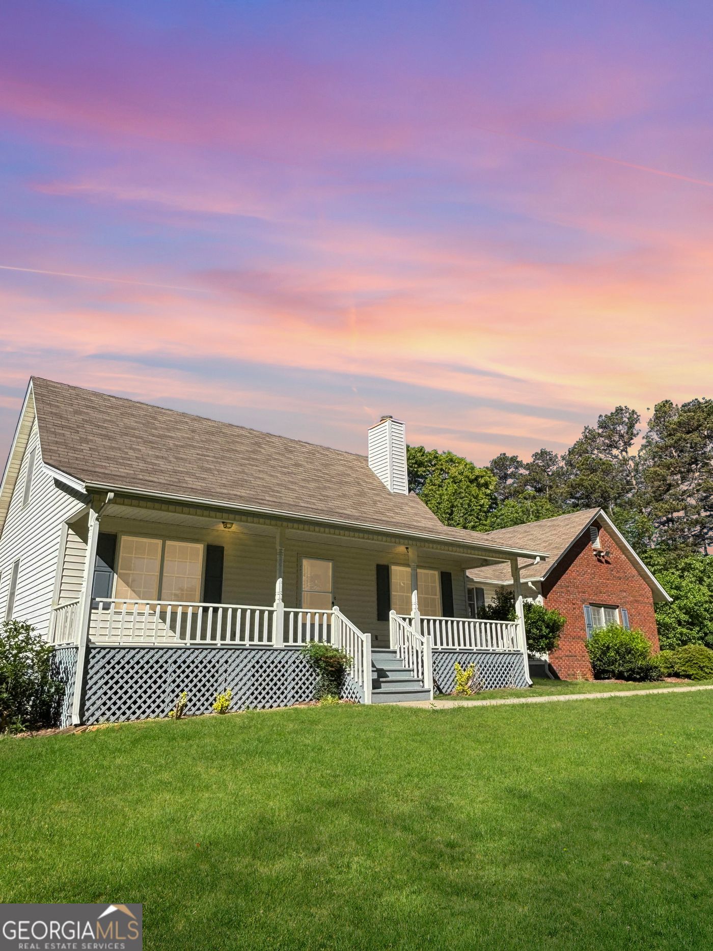 Charming Cape Cod on just over 6 acres featuring a covered front porch. Spacious owner's suite on the main with his and her walk-in closets. Living room boasts a nice brick fireplace, and a separate dining room offers built-in storage. Bright kitchen with a center island, and a large great room with a wood-burning stove adds to the space. Upstairs, two bedrooms share another full bath. Enjoy the screened porch off the back and a detached 2-car garage with a sink and shower. The unfinished upstairs in the garage offers potential. New roof is being put on garage. Conveniently located near 365.