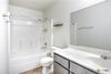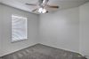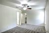 The primary suite offers a large walk-in closet, a generous vanity, and a shower/tub combo. All three bedrooms feature ceiling fans and carpet for comfort and style.