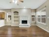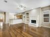 Situated on a picturesque, tree-lined street, this home features all bedrooms on the main floor, including a spacious primary suite with peaceful backyard views. A formal dining room welcomes you at the entry, while the open-concept kitchen showcases granite countertops, a granite sink, gas cooktop, and seamless flow into the living area with a beautiful stone fireplace and custom built-ins.