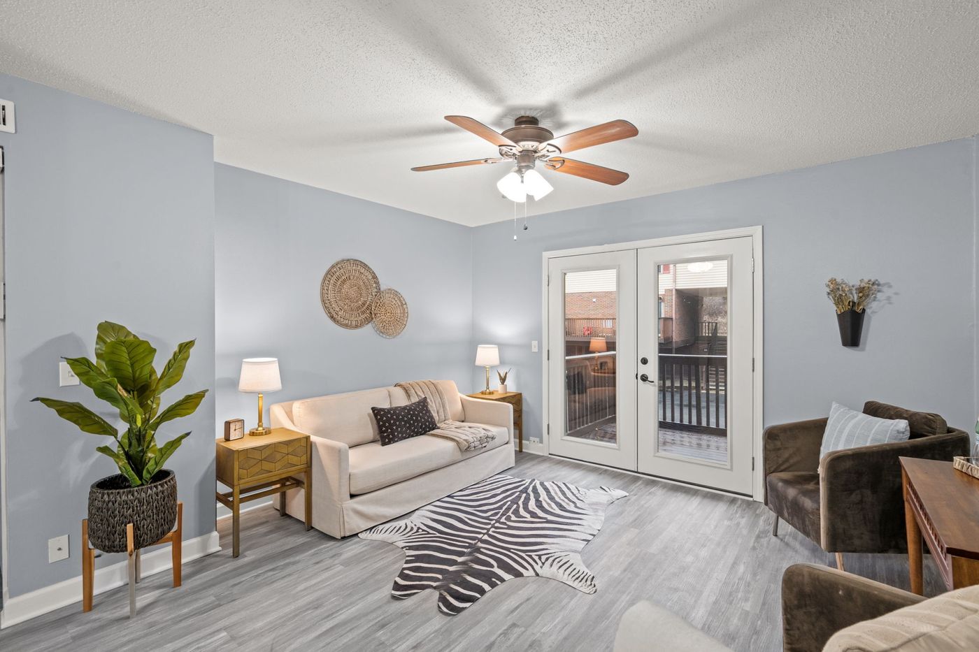 This charming 1 bed, 1 bath Apartment was completely renovated in 2022! Located less than 20 min from downtown Nashville, the Nashville Airport and State Parks, this lovely home is perfectly situated for travel and local recreation! Due to its central location, this home is a fantastic investment opportunity and would be an ideal starter home. Entering through the front door, you are welcomed into an open-concept living & dining area featuring french doors leading to a private balcony. Adjacent to the dining area, the kitchen features beautiful tile backsplash, a large double sink, and all newer appliances! Down the hallway, the primary bedroom features a large walk-in closet. The fully updated bathroom is complete with gorgeous tile floors and a beautiful double vanity and tiled shower!