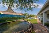 Incredible opportunity to own this unique property with a beautiful main home + guest house on 1/3 acre! Freshly painted, updated wood & tile flooring, shutters, unique fixtures & stained glass. Family & living room share a double sided fireplace & is open to the kitchen offering granite, cabinet with glass inserts, & abundant storage. The private wing offers 3 bedrooms - one with exit outdoors. French doors from the master bedroom & family room lead out to the full covered patio. The guest house is perfect for guests or multi-generational living with a full kitchen, large main area, walk in closet & bathroom. 3 car garage (currently used as 2.5 car with work space). Gorgeous heated pool, built in BBQ, SOLAR system & professionally installed generator to run entire home!