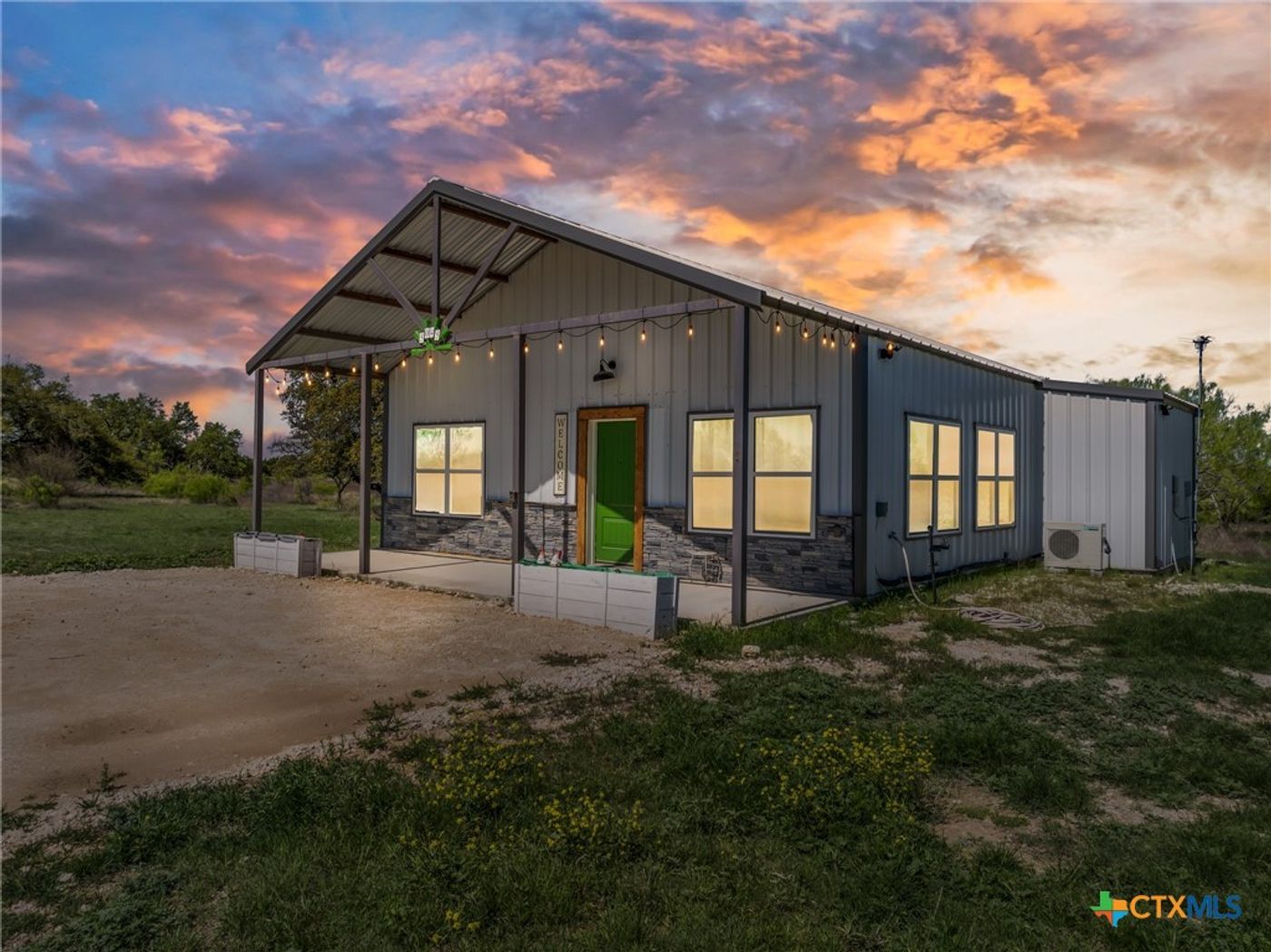 CalculateThis stunning 10.01-acre lot is the perfect canvas for your future, featuring a modern single-family residence that combines comfort and style in a pristine setting. The 1,131sq. ft. metal mini barndominium, built in 2021, showcases a durable metal roof and a raised solid foundation that has been tested and compacted to 90% by a certified third party, ensuring long-lasting quality. Inside, you'll find a thoughtfully designed space with 1 spacious bedroom and 1 full bathroom equipped with a luxurious shower and separate tub, plus an additional half bathroom for guests. The open living and kitchen area enhances connectivity, perfect for entertaining or relaxing. A separate pantry and laundry/mudroom add convenience, while ample closet space and attic storage provide all the room you need for your belongings. Experience optimal climate control with two mini-split heating and cooling units for the living area and bedroom. Stay comfortable year-round with foam insulation, a tankless water heater, and energy-efficient double-pane windows. Enjoy the elegance of stained concrete flooring and the refreshing breeze from ceiling fans in the living room, bedroom, bathroom, pantry, and laundry. This property comes fully equipped with essential appliances, including a propane stove, dishwasher, refrigerator, washer and dryer, and microwave. Relax and enjoy the views from your 8x30 (concrete) front porch. Step outside to discover a 22x12 shed with a 20 ft awning, offering additional storage or workspace. Plus, there's a dedicated RV parking pad with 110 and 220 RV hookups, providing added convenience for your adventures. Water well on the property. Fiber Optic Internet (CTTC), Electricity from Hamilton County Electric, propane from Farmers Propane. Property is in the Evant ISD School District and is centrally located: Dallas 2.5 hrs, Austin 1.5 hrs, Waco 1 hr, Lampasas 35 min, Hamilton 20 min, Gatesville 30 min.