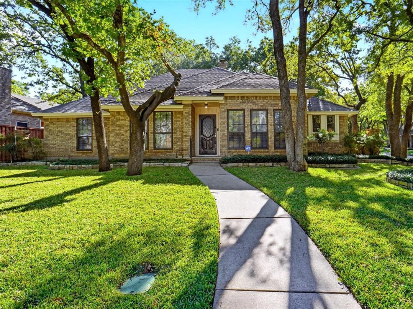 Well maintained and move in ready, this 3bed, 2bath home in South Arlington offers recent upgrades that include a new roof (2023), new HVAC system, and no carpet throughout the home. The layout features two spacious living areas, one with a wood burning, painted brick fireplace and the other perfect for a home office or workout space. The kitchen includes electric appliances, a breakfast bar, and opens to the dining area, which showcases a beautiful built in wood china hutch. The large walk in laundry room provides additional storage and functionality. The primary suite features a walk in closet, updated ceiling fan, and ensuite bath with a walk in shower. Two additional bedrooms both with ceiling fans and one with a walk in closet share a full hall bath with a tub shower combo and built in cabinets. Outside, enjoy a covered back patio, mature trees, and a spacious yard situated on a corner lot. Located near Lake Arlington and just minutes from schools, restaurants, and entertainment, this home offers a great combination of space, updates, and location.