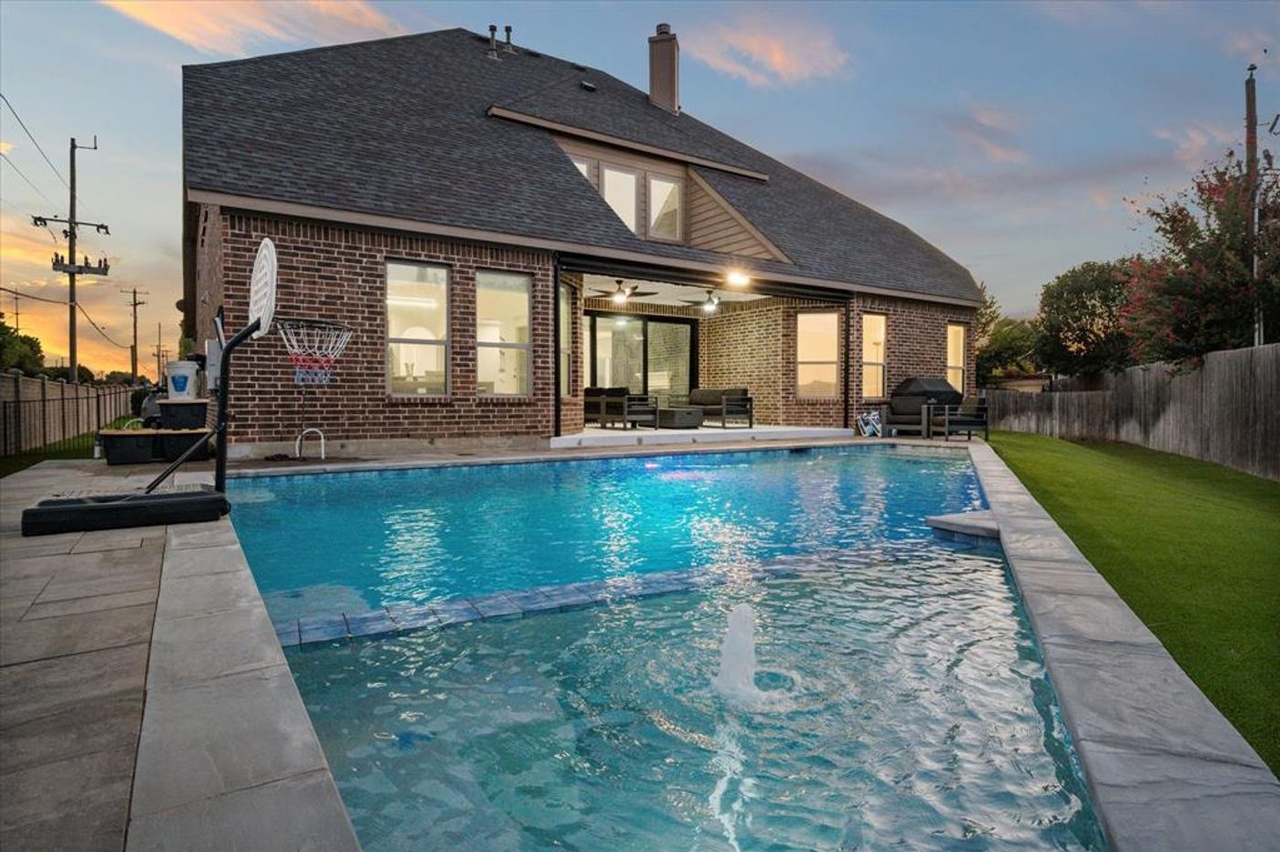 Elegant minimalist 4-bedroom, 4-bath home located in the desirable Martin High School district in Arlington. Nestled on a quiet cul-de-sac, this property features an open floor plan with 3 spacious living areas, to include the upstairs gameroom, a media room and first floor living space. The kitchen boasts ample cabinetry and overlooks the spaciously elegant living room with 20 foot ceilings and a fireplace surrounded by a custom designed wood accent wall. The butler’s pantry and formal dining space make the home perfect for entertaining. The primary bedroom includes an oversized walk-in closet and an en-suite bathroom with dual sinks, soaking tub and separate shower. The home office space is perfect for virtual working. Enjoy outdoor living with an artificial turf yard, covered patio with remote control shades and sparkling salt water pool and spa. Conveniently located near shopping, dining, and entertainment.
