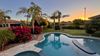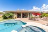 Exclusive, gated home in Chandler on oversized lot with guest house and bonus room! 4 bedrooms, 4.5 bathrooms with sparkling heated pool and spa. Gourmet kitchen with granite countertop, island with farmhouse sink, 5 burner gas cooktop, butler's pantry with bar and wine fridge. Dramatic 12 ft ceilings, shutters and surround sound speakers. Great room with fireplace. Formal Dining room. Primary suite with double walk-in closets, two-way walk-in shower with double shower heads. Romantic bathtub and double vanity sinks. En-suite bedroom with private full bathroom. Arizona living at it's finest with extended covered patio overlooking re-furbished heated pebble-tec pool and spa with swim up bar, seats and umbrella holder and baja shelf. Tropical oasis for chilling out under the sun! The bonus room is pre-plumbed for a sink. So if you have a home business that needs a private entry without entering the main house, this room is a perfect set-up for that! RV gate on side of home. New pool filter too.