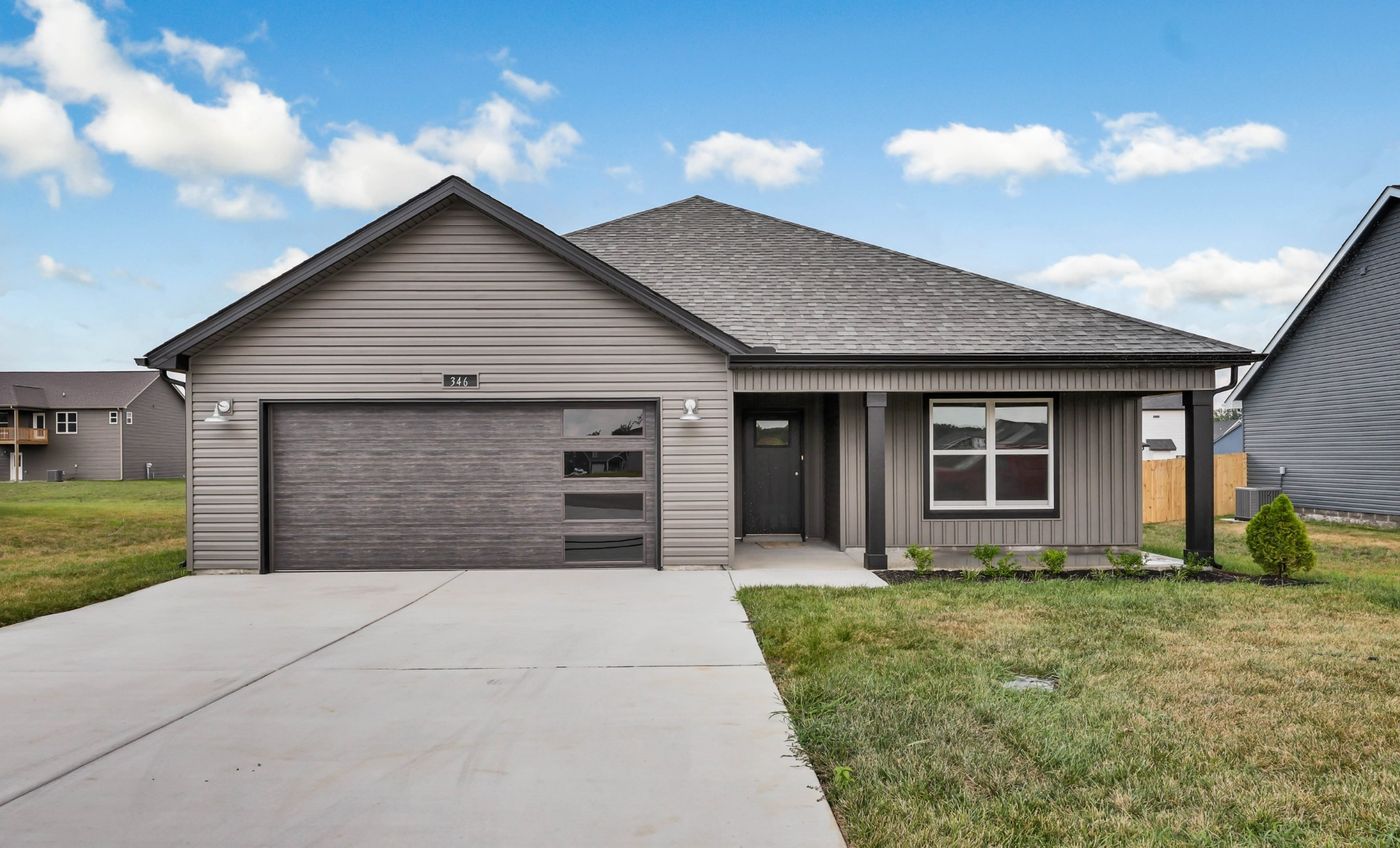 Ready to move in! Welcome to this stunning new construction one-level home located in the desirable Magnolia Place Subdivision of Clarksville, TN. This 3-bedroom, 2-bathroom open floor plan boasts a spacious open floor plan that is a perfect blend of comfort and style. As you step inside you'll be greeted by the inviting interior featuring large bedrooms and modern finishes throughout. The kitchen is a chef's dream with sleek quartz countertops, custom cabinetry, peninsula, and stainless steel appliances. The living areas are adorned with soaring high ceilings, an electric fireplace and luxurious vinyl plank flooring creating a warm and welcoming ambiance. Primary ensuite features trey ceiling, walk in shower, double vanity, tile flooring & extra large walk in closet. Outside offers a beautiful fenced in yard with mature trees and covered front porch and spacious back deck, providing the ideal setting for outdoor gatherings and entertaining. The 2-car garage provides ample space for parking and storage. Conveniently situated off Dover Rd & Lafayette Rd area with easy access to schools, shopping, entertainment & outdoor recreation. Builder is offering a generous $10,000 credit to use anyway you want - pay all closing costs with a rate buy down plus install a fence and blinds OR use for a price reduction!