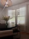 The living room, anchored by a fireplace and framed with generous windows, offers a bright and welcoming space for both relaxing and entertaining. The adjacent dining area provides the perfect backdrop for both casual meals and intimate gatherings, while the kitchen blends practicality with timeless design.