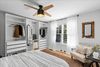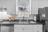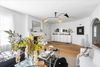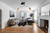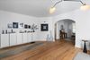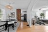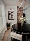 Inside, the layout is exceptionally functional, offering a seamless flow from the living room to the dining area and kitchen. Natural light pours through large windows, highlighting the fresh interior palate, warm hardwood floors, and architectural details like arched doorways and exposed brick. Every square foot feels intentional, maximizing comfort without sacrificing style.