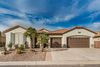 FURNISHED!! Beautiful N/S facing home with casita. Home backs up to a wash and golf course & mountain views! The casita has its own private entrance and is complete with a kitchenette & full bath. This light & bright home features 3 beds, 3.5 baths, den & full 3 car garage with the 4ft extension, brand new AC, epoxy flooring and floor to ceiling built in cabs & workbench. Kitchen has beautiful cherry cabs, engineered stone countertops w/full height backsplash. RO system, butlers pantry, under cabinet lighting, double ovens with microwave. Master bed & dining area have gorgeous bay windows. 20x20 ceramic tiles throughout with carpet in just the bedrooms. White plantation shutters all thru the home along with the central vac are just a few of the many upgrades this home has to offer.
