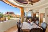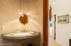 AND ARTISTIC WATER FEATURE. THE TRAVERTINE FLOORS CONTINUE PAST A
