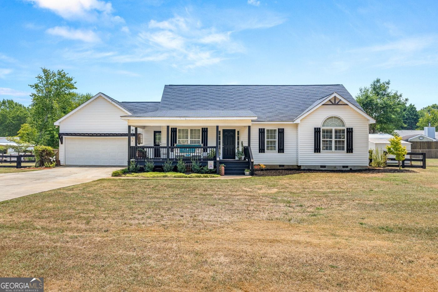Welcome to this beautiful, ranch-style home nestled in a peaceful rural setting with no HOA restrictions! Big items are taken care of, so you can just move-in: luxury vinyl flooring, new stainless steel appliances, new roof, and new hot water heater. Inside, you'll find three spacious bedrooms and two full-size bathrooms, along with a laundry room that opens to the side-front porch, creating an authentic mudroom. The oversized corner lot offers ample space for a workshop or parking for an RV or boat, and the large garage provides additional storage and convenience. This charming property boasts a wrap-around porch, perfect for soaking in the tranquility of the countryside. Despite its serene location, this home is conveniently close to local shopping, dining, and outdoor activities. Plus, it's less than five minutes from the local elementary school, making it ideal for those with school-aged children. Don't miss this fantastic opportunity to enjoy the best of rural living with modern conveniences!