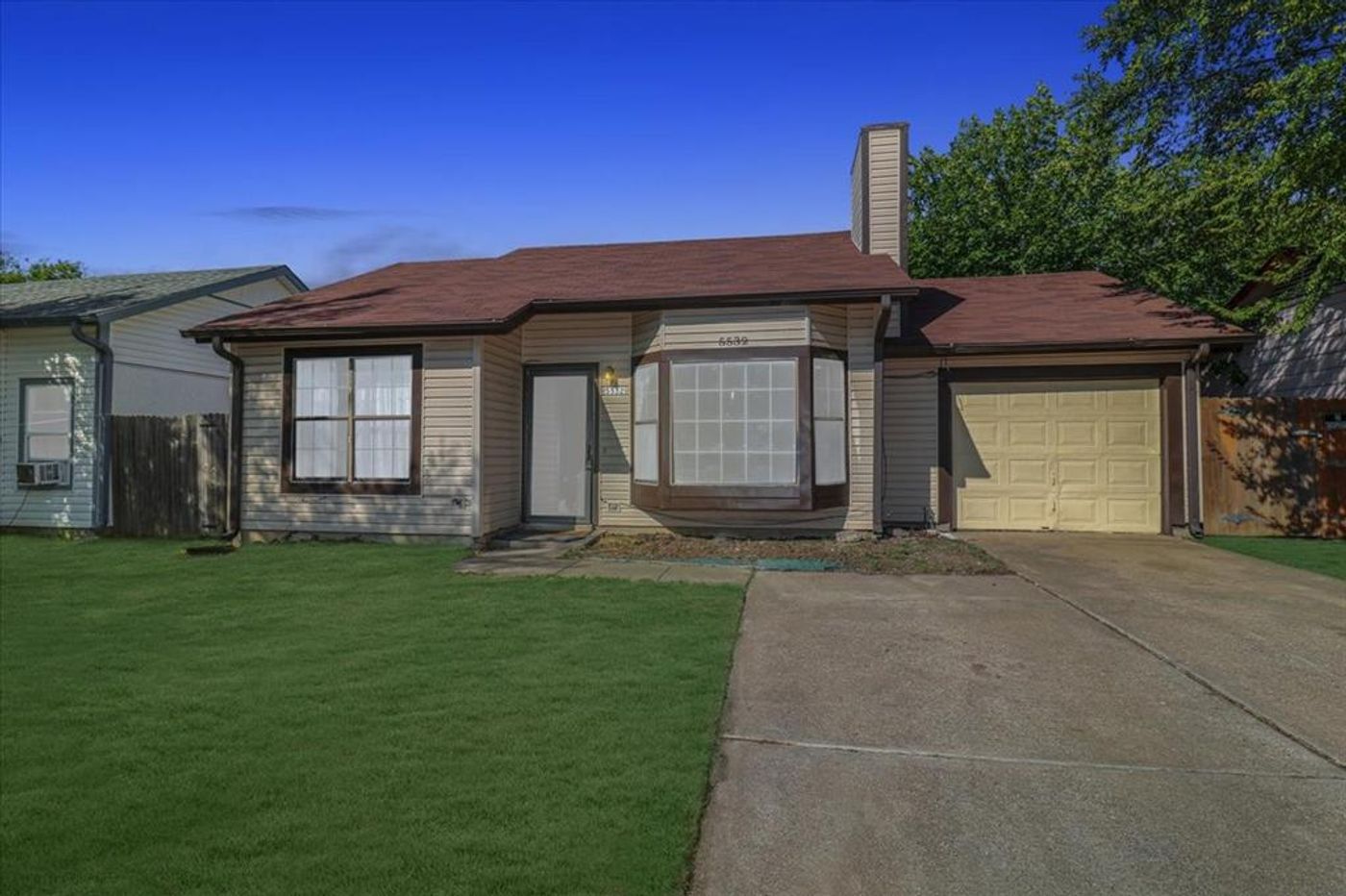 South Arlington home is the perfect starter home. The kitchen is open to the living room with a fireplace, a skylight in the dining area, and the primary bedroom has a vaulted ceiling. Recently replaced AC system and no maintenance vinyl siding on the exterior. Easy access to 360, I-20, and Mansfield. Quick possession is available.