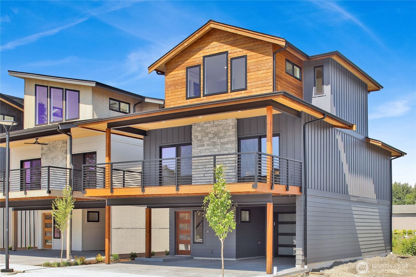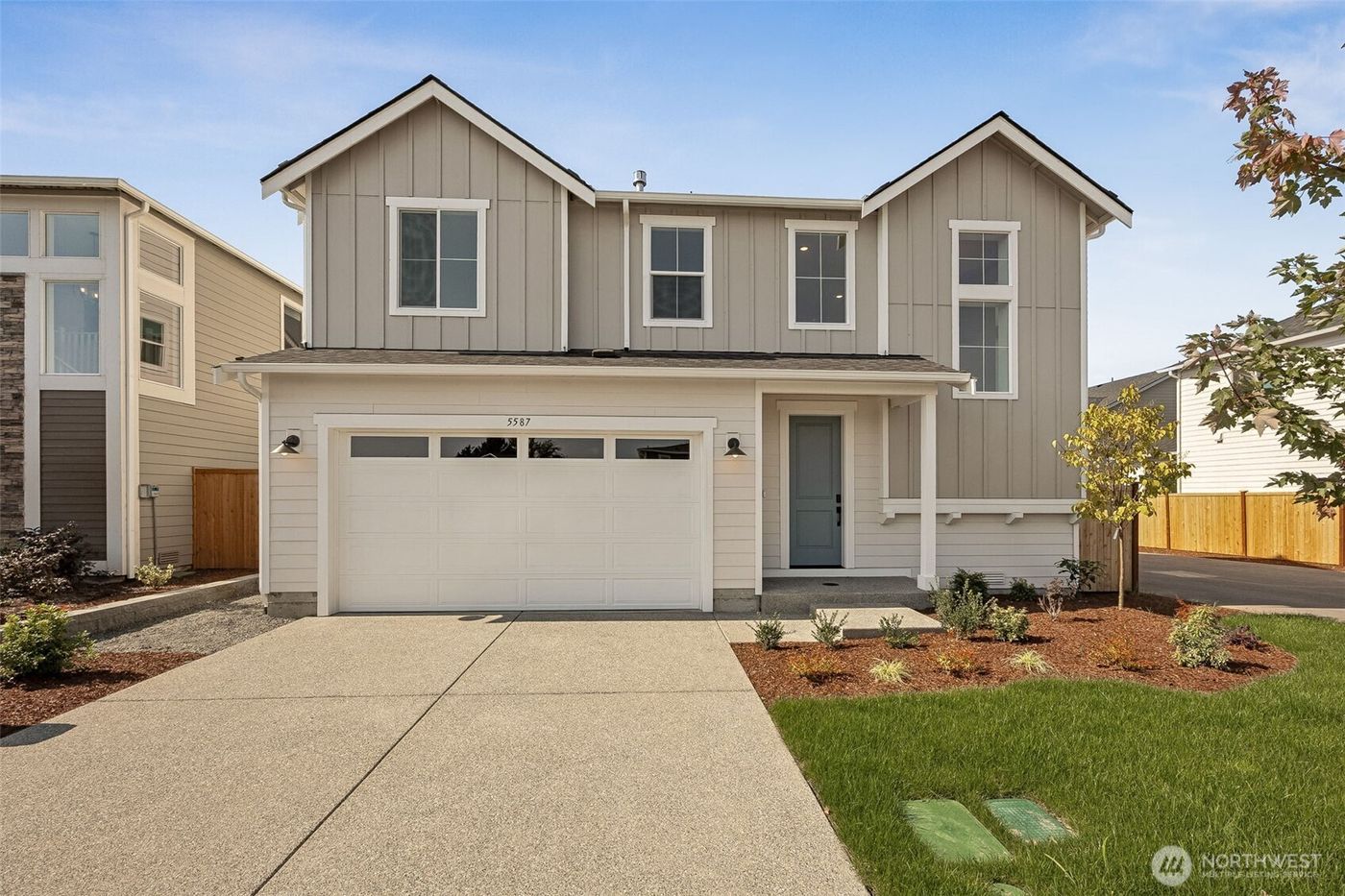 Welcome to Northview 2 in Cordata, Bellingham's premier solar home community! This stunning 2-story contemporary home features an open and spacious floorplan, a custom kitchen with sleek quartz countertops, and a primary suite with a private ensuite boasting a double sink and walk-in closet. Enjoy two additional bedrooms plus a versatile den/office that can serve as a possible fourth bedroom. Built with sustainability in mind, it offers efficient mini-split heat pumps with A/C, a low-maintenance yard, a covered patio, and EV charger prewiring. Take in mountain and golf course views. Includes a 2-car garage. Your dream home awaits—secure yours today!