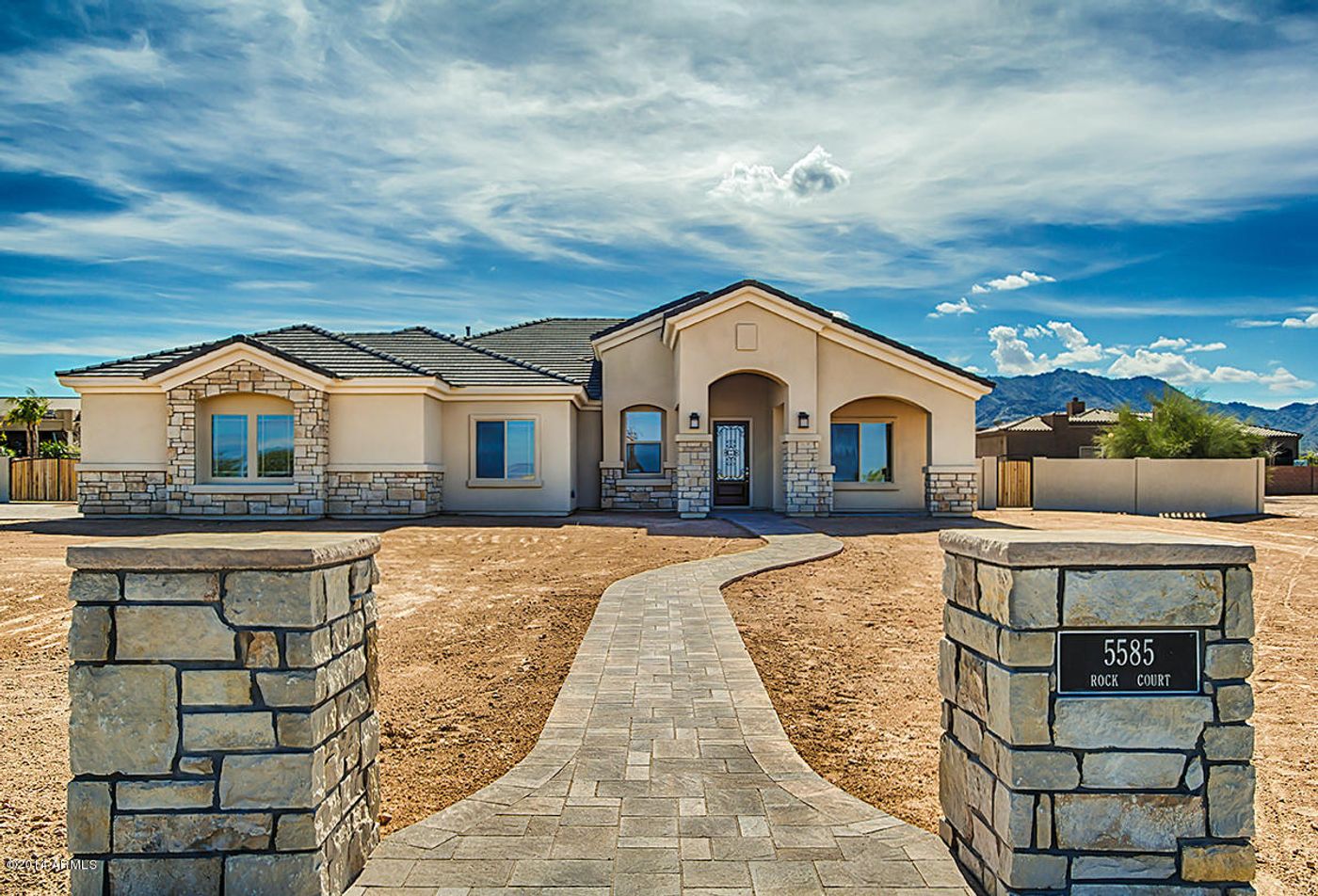 2014 BRAND NEW CUSTOM BUILT HOME ON AN ACRE CUL~DE~SAC LOT WITH NORTH/SOUTH MOUNTAIN & CITY LIGHT VIEWS!! Complete w/ 2 YEAR WARRANTY!! Spend the AZ evenings on your enormous covered patio looking up at the majestic San Tan Mountains, OR open up the 10' Multi-slide wall of glass & let the evening breeze blow into your Kitchen as you entertain friends….GRANITE TOPS, UPGRADED CABINETS, TILE BACK SPLASH IN THE KITCHEN