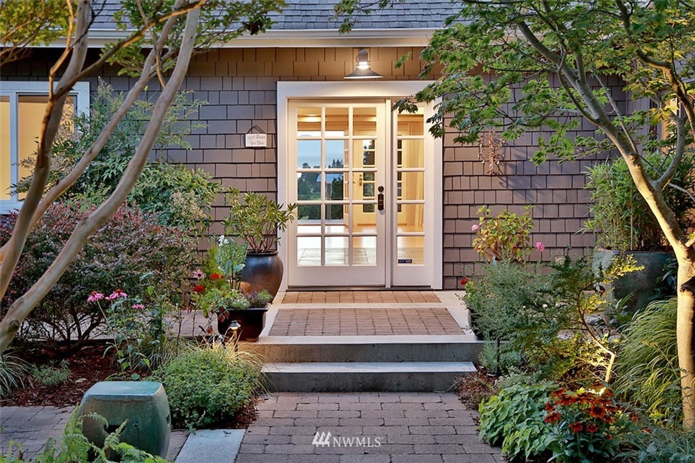 An enchanting garden meanders to your airy, soaring country home overlooking verdant pastures to sparkling Puget Sound & the majestic Olympics!French Doors open to the vaulted Living Room's exposed beams & timbers, lustrous hardwood floors, custom built-ins & courtyard view Dining. The granite & cherry cook's Country Kitchen expands to the covered, view Deck! Enjoy main level Master Bedroom & Guest En Suite, Den & Office plus a garden Studio & upper Guest Suite! 3 Car Garage plus Adjacent Lot!