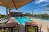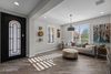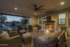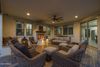 Welcome to your dream home in the active adult community of Encore at Eastmark! This highly upgraded, original-owner home sits on a premium lot bordering common area and offers 2 bedrooms + an office and 2.5 baths in 2072 SqFt with an open great room layout and a front flex room perfect for a formal dining or second living area. The kitchen is beautifully designed with granite countertops, subway tile backsplash, stainless appliances including a gas range with double ovens, a coffee bar area with wine fridge, a walk-in pantry, and a large island with breakfast bar and pendant lighting. Sliding glass doors lead out to a backyard designed for entertaining! You'll love the covered patio with a gas fireplace, built-in seating ledge, ceiling fan, and roll-down shade; the paver steps out to a gas firepit and outdoor dining area with pergola covering and built-in BBQ, and the low maintenance desert landscaping with artificial turf. The elegant primary retreat has a tray ceiling and an en-suite bath with a dual sink vanity and makeup area, tiled shower with bench seat, and a walk-in closet. The office has glass French doors for privacy and a custom built-in desk with bookcases and storage. Other features include plantation shutters, a drop-zone with cabinets and cubbies, a laundry room with barn door entry, cabinets, and shelving, a powder room for guests, and a 3-car garage. Wonderful amenities for your active-adult lifestyle include a pool and spa, fitness center, tennis, pickleball, and bocce ball courts, activity rooms, and much more!