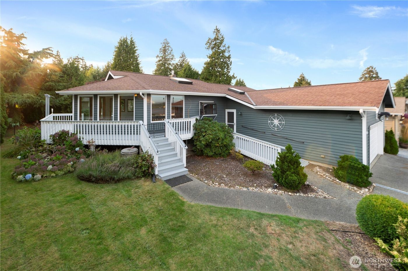 Breathe in the salt air and soak up golden sunsets over Semiahmoo Bay. This coastal retreat offers private beach access, vaulted ceilings, and walls of glass framing endless water views. A spa-inspired primary suite with gas fireplace invites serenity, while the full lower level lives like its own residence with second kitchen, 2 non-conforming bedrooms, and private entry—ideal for guests, multi-generational living, or stylish income suite. Nearly three-quarters of an acre of manicured gardens and mature apple trees surround the home in timeless beauty. Savor mornings with coffee on the deck, strolls along the shore, and evenings beside the bonfire as the sky fades to ember, just moments from Semiahmoo Resort’s golf course, marina, and spa.