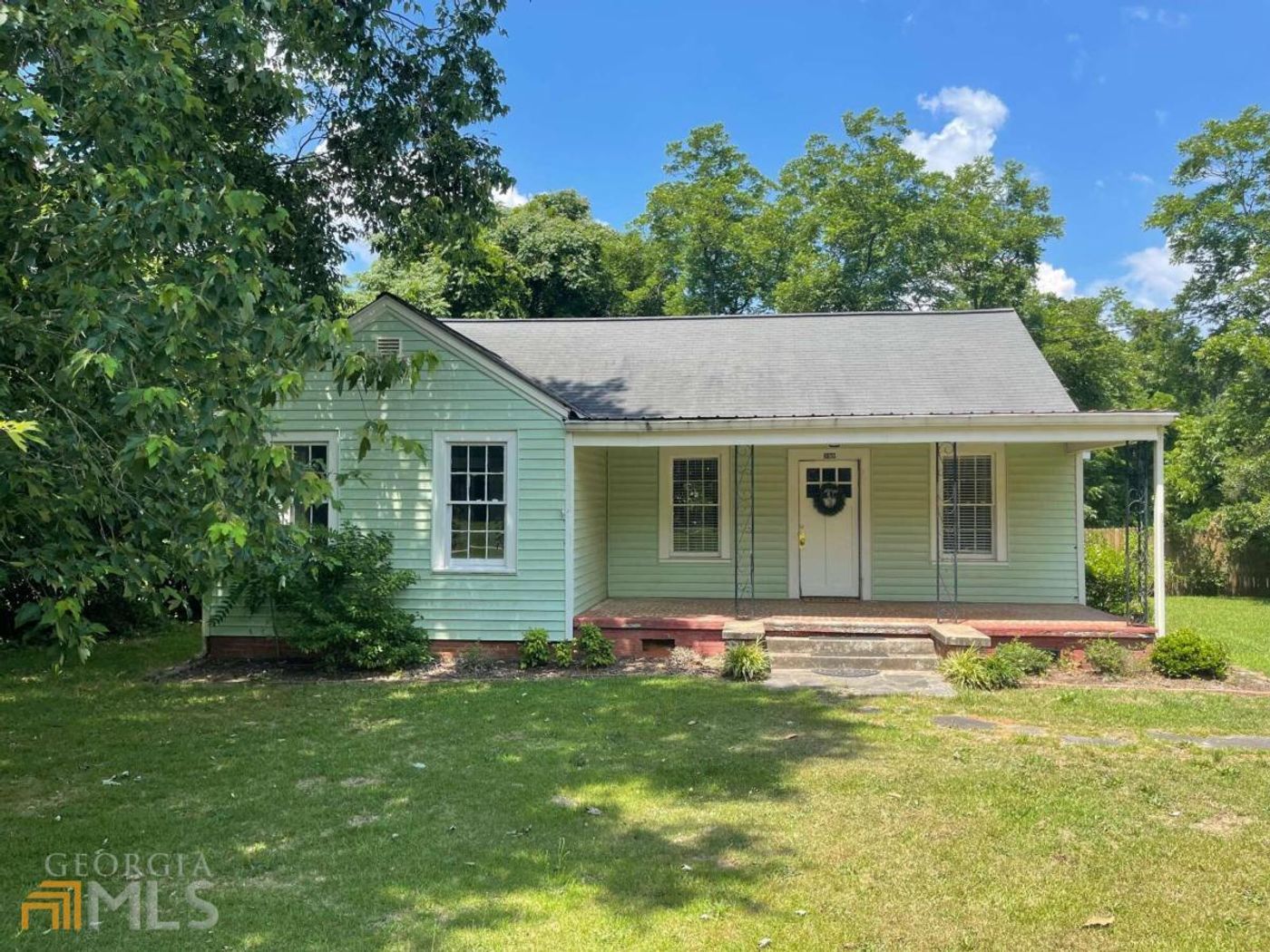 Wonderfully remodeled 3BR/2BA home on 2.24 acres, within walking distance of Social Circle shopping and dining. Beautiful wood floors. Kitchen has solid countertops, custom cabinetry, and stainless appliances. Large dining room with pendulum lighting. Big owner suite with attached full, tiled bathroom. Laundry area in hallway with pedestal for washer and dryer and closet. Tile bathroom in the hall. Large secondary bedrooms. Floor covering needed in hall and front bedroom. Screened porch off of the kitchen/dining area. Huge, fenced back yard with two outbuildings. Don't miss out on this great opportunity.